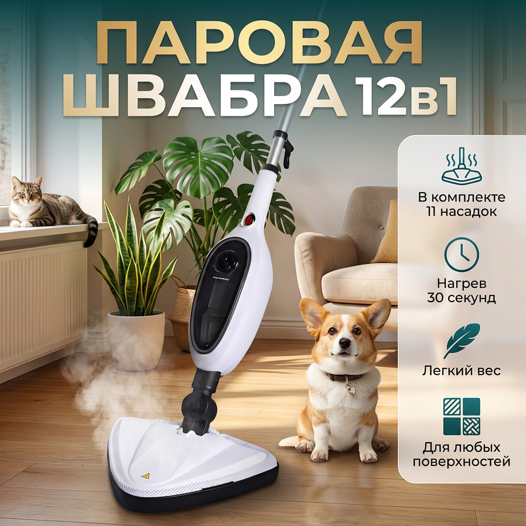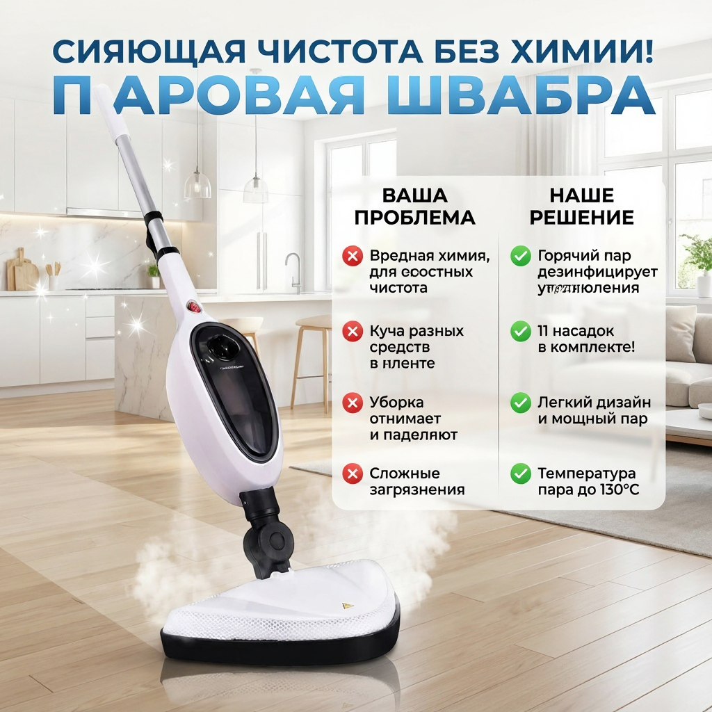 Представьте: идеально чистый дом, в котором нет места вредной химии, а воздух свеж даже после генеральной уборки. Это не мечта, а реальность с паровой шваброй 12в1! Этот инновационный прибор — не просто швабра. Это центральный элемент вашей экосистемы чистоты